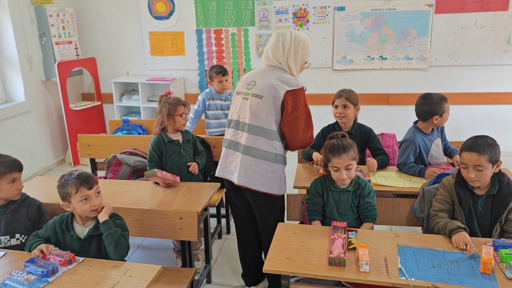 Vezirköprü İnkaya İlkokulu Öğrencilerine mont, bot, oyuncak gibi hediyeler götürdük.
