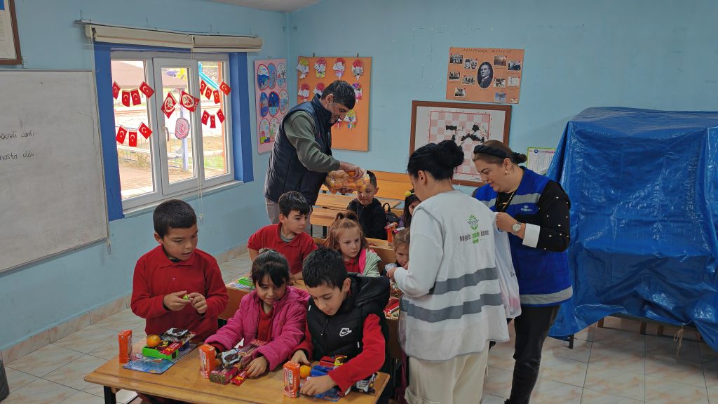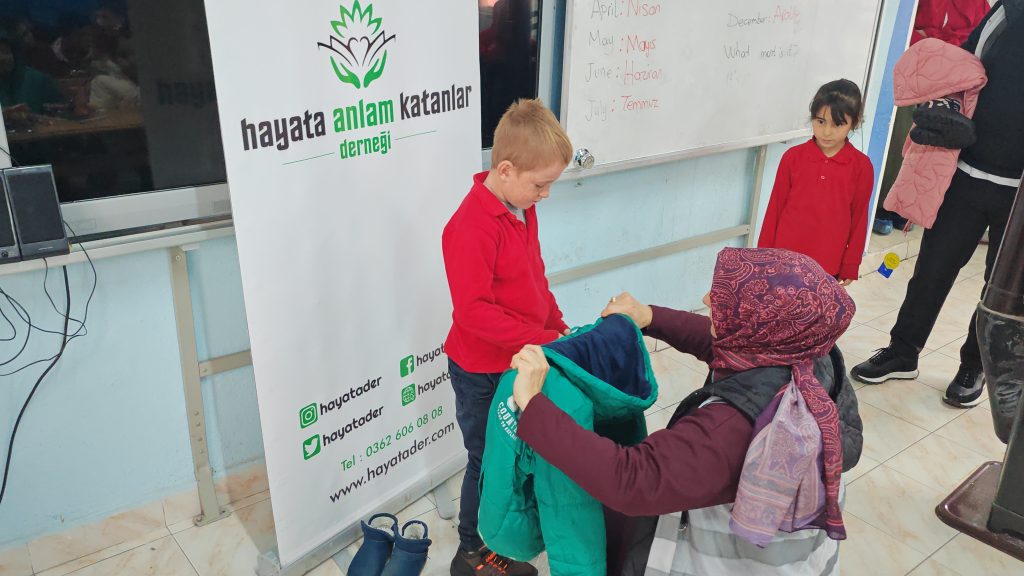 Vezirköprü Örencik İlkokulu Öğrencilerine mont, bot, oyuncak gibi hediyeler götürdük.